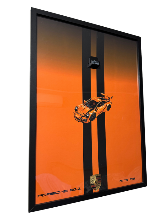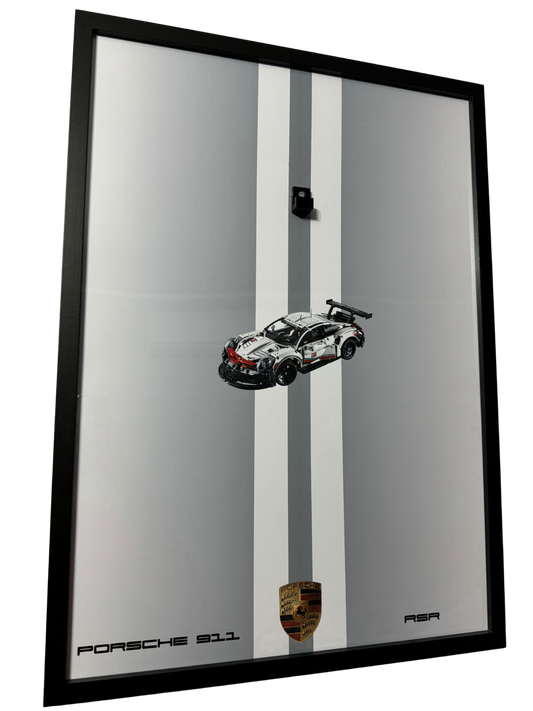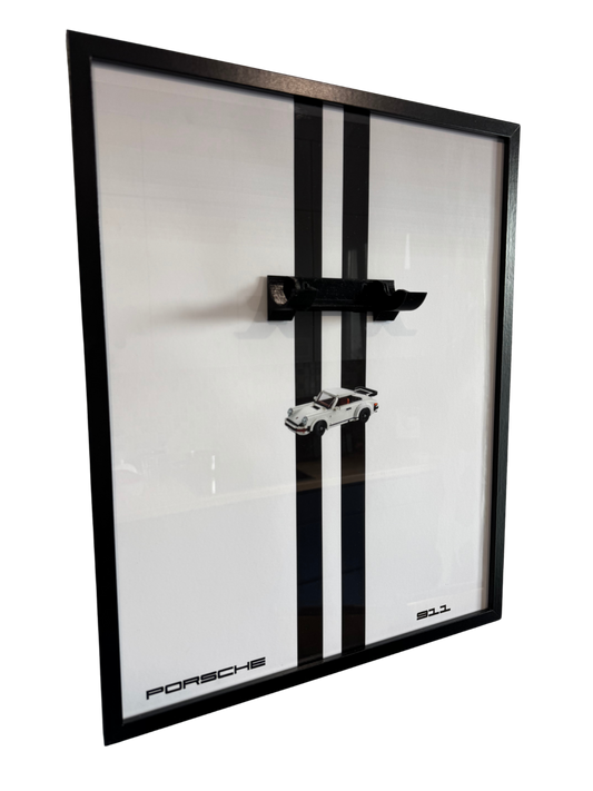Autorski uchwyt, który umożliwia zawieszenie modelu na ramce, został zaprojektowany od podstaw przez nasz zespół i precyzyjnie wydrukowany w technologii 3D z filamentu PETG. Dzięki właściwościom tego materiału uchwyt jest sztywny i wytrzymały, co pozwala na stabilne utrzymanie aut w pozycji pionowej.